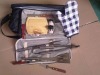 Descriptin:18pcsbarbecue tools set in a plastic case, including:fork,spatula,tong,knife,basting brush,grill brush,4pcs skewers,8pcs corn holders. Material:stainless steel and wood handle. Packing details:59.5x32x45cm/6sets;18/19kgs Delivery time:35days Payment terms:30% deposit,balance after shipment against B/L or L/C at sight.